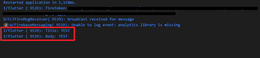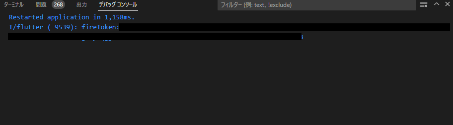 ビルドすると↓のようにfireToken(勝手に名付けた)が表示されますのでコピーしておきます。