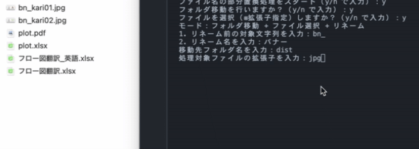 ファイル名の部分置換処理をスタート(y/n で入力):y