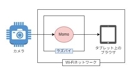 ほぼ Momo 公式サイトのテストモードの画像のまんまですが、Raspberry Pi に USB カメラを接続して、Momo を使って WebRTC のストリーミングを行います。
