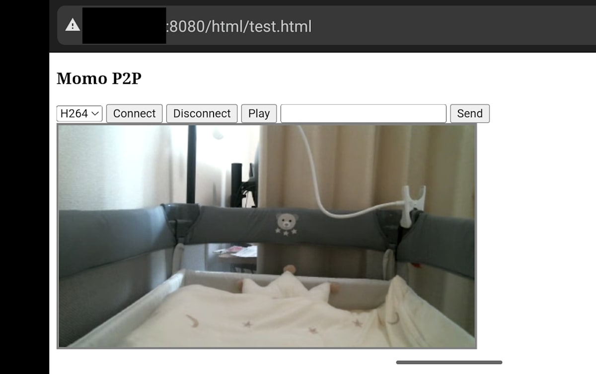 タブレットやスマホから、ラズパイで起動している Momo の HTTP サーバのベビーモニターのページにアクセスします。