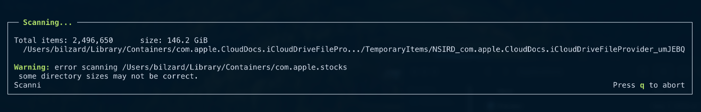 Closed2025/02/03にクローズ2Mac OSのディスクの整理はncduが便利bilzard2025/02/03Disk整理にncduというツールが使いやすかった。 brew install ncdu ncdu / 数分くらいで全ディレクトリの解析を実施してくれる。 返信を追加bilzard2025/02/03解析中の画面 ディレクトリをインタラクティブにたどれる。 返信を追加このスクラップは2025/02/03にクローズされました