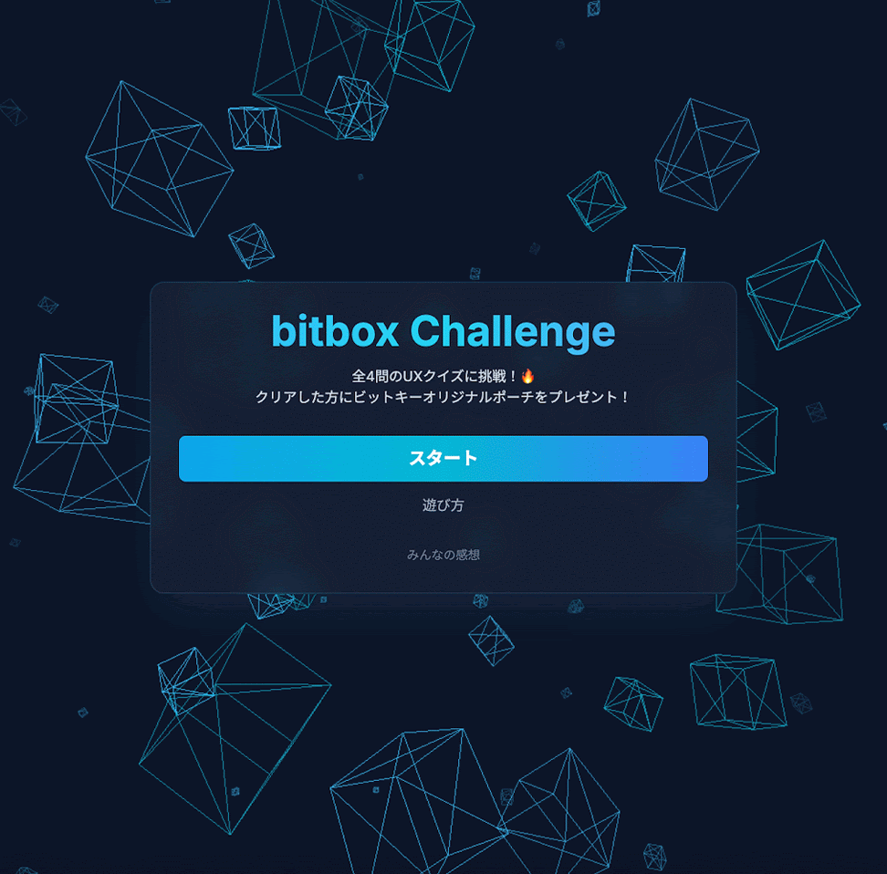 クイズ企画で使用する「bitbox」のイメージに合わせて四角をモチーフにしたテーマを実装しました。