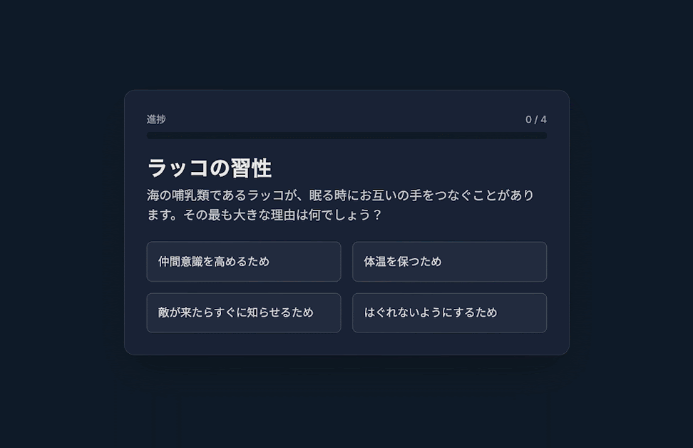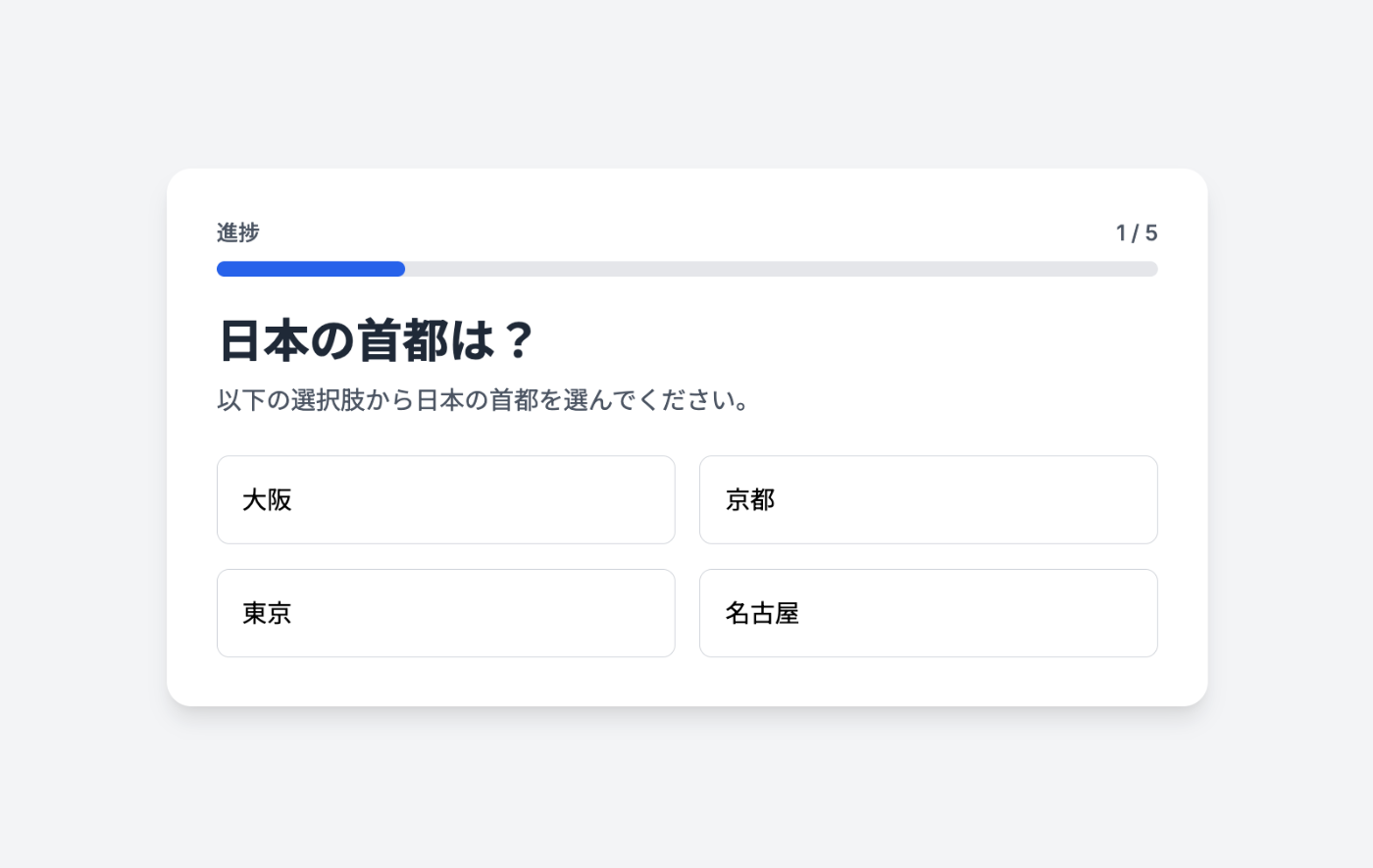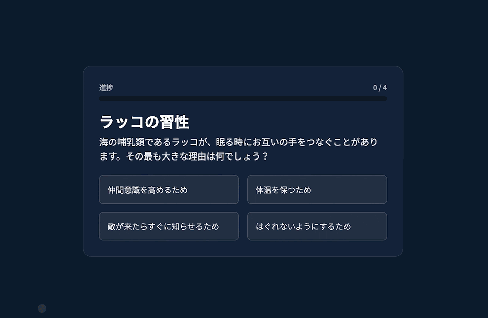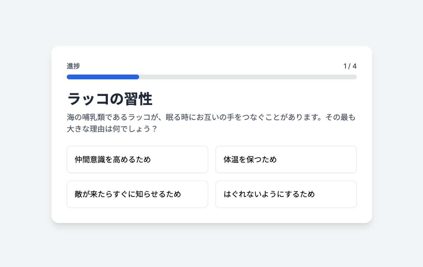 まずは、生成AIを使って作成したクイズアプリをご紹介します。
