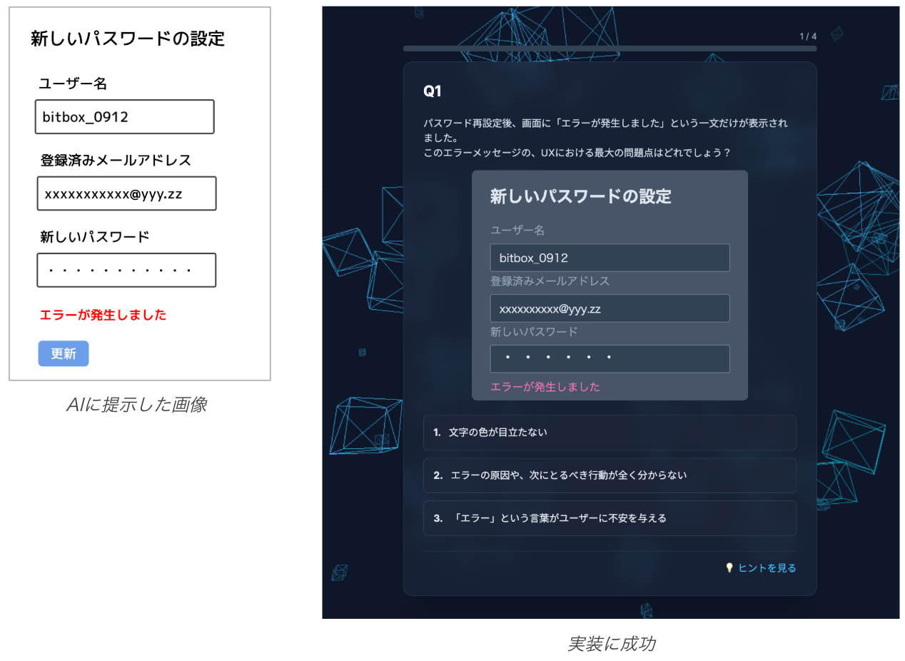 このプロンプトには不具合の原因や修正箇所が具体的に明記されています。