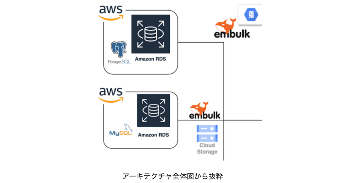 例として1つ挙げると、上記アーキテクチャ左上と左中は同じAWS環境からデータを取得していますが、異なる方法でETL処理を組んでおり、左上AWS環境からの取得はAirflowのマネージドサービスであるGCPのcloud composerを使い、SQLによるDB収集を行なっていますが、左中のAWS環境(MySQL)からの取得ではエクポート取得を選択してます。