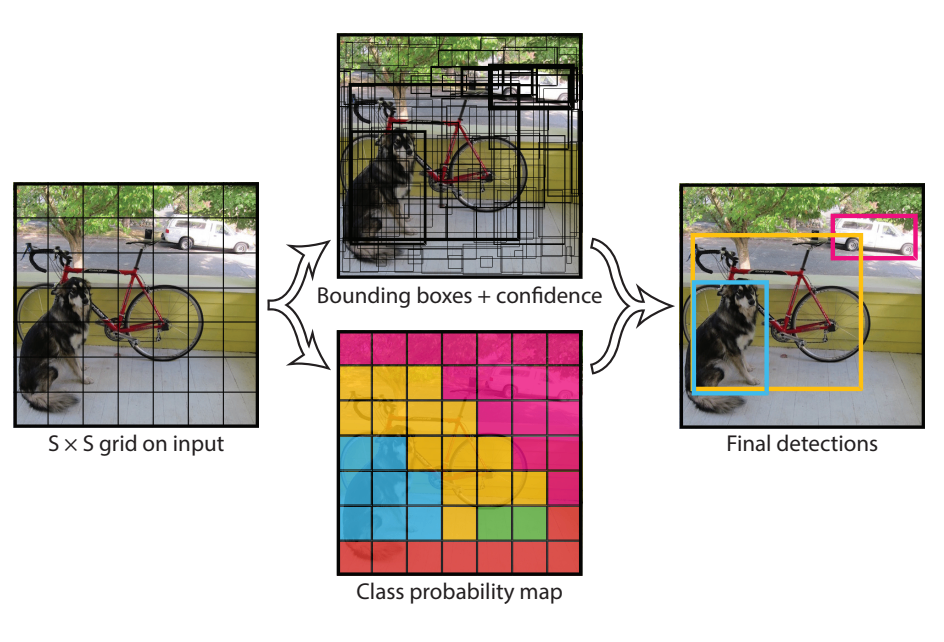 一方、YOLO(下記図[4])やSSDなどのOne-Stage Object Detectorは、高速に物体検出を行うネットワークとして提案されていました。しかし、当時はTwo-Stage Object Detectorと比較して精度が劣るという課題がありました。