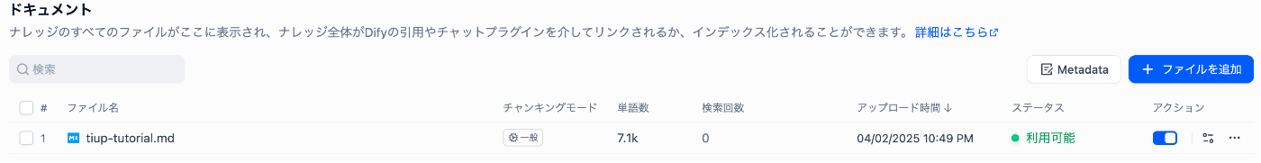 あとは 保存して処理 とすれば、ナリッジのできあがりです。ドキュメントで 利用可能 となっていれば使えます。