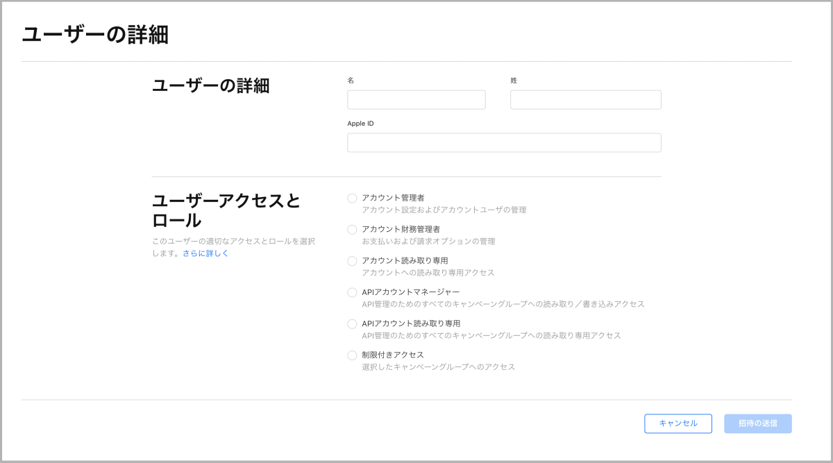 招待される側(APIユーザー)用にAppleIDが必須となるので事前に用意しておきましょう。