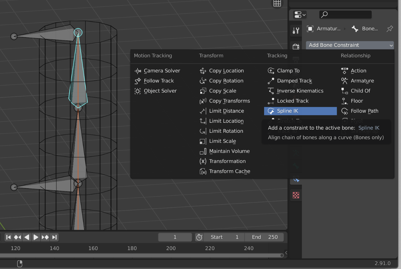 ここから Spline IK 用のボーンとベジェ曲線の制御点をHookで紐づけていきます.これはややこしいので動画でお見せします.