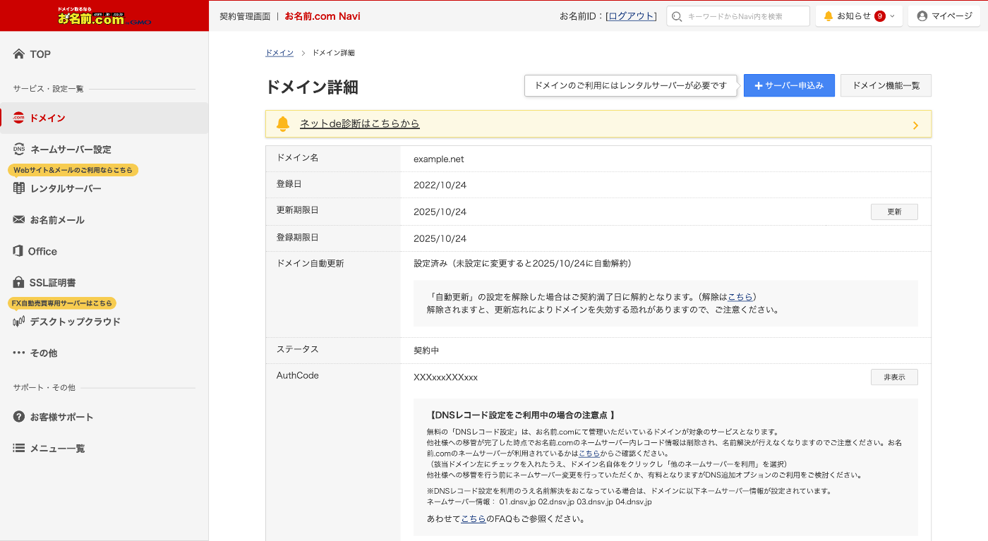 【1】お名前.comで「Whois情報公開代行」を解除する