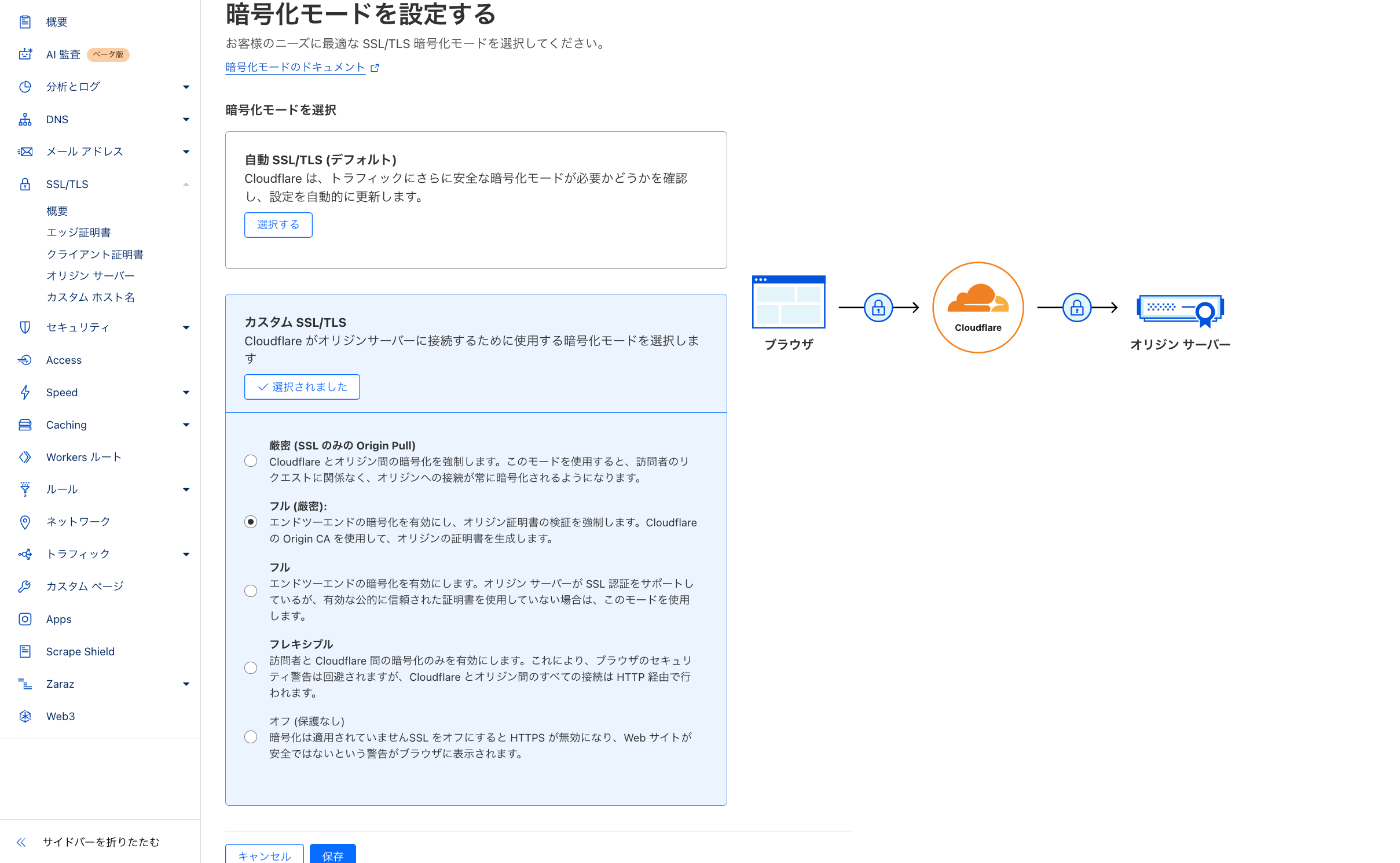 SSL/TLS 暗号化の設定後 → 「フル (厳密)」