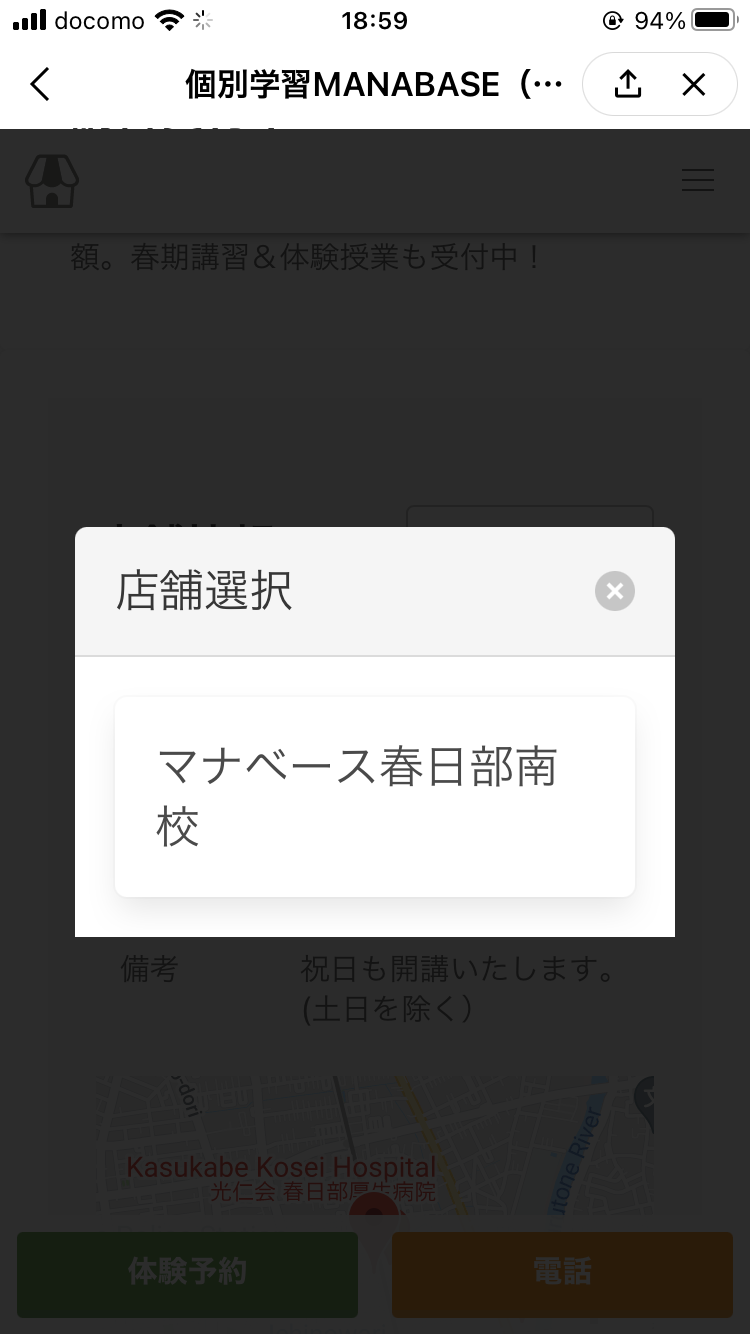 さらに店舗選択も。本来飲食店向けのテンプレを学習塾向けにカスタムしている感じですかね。