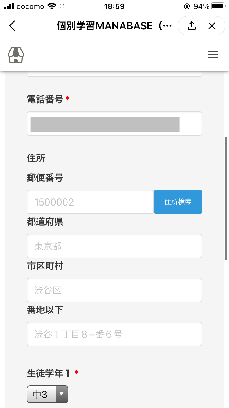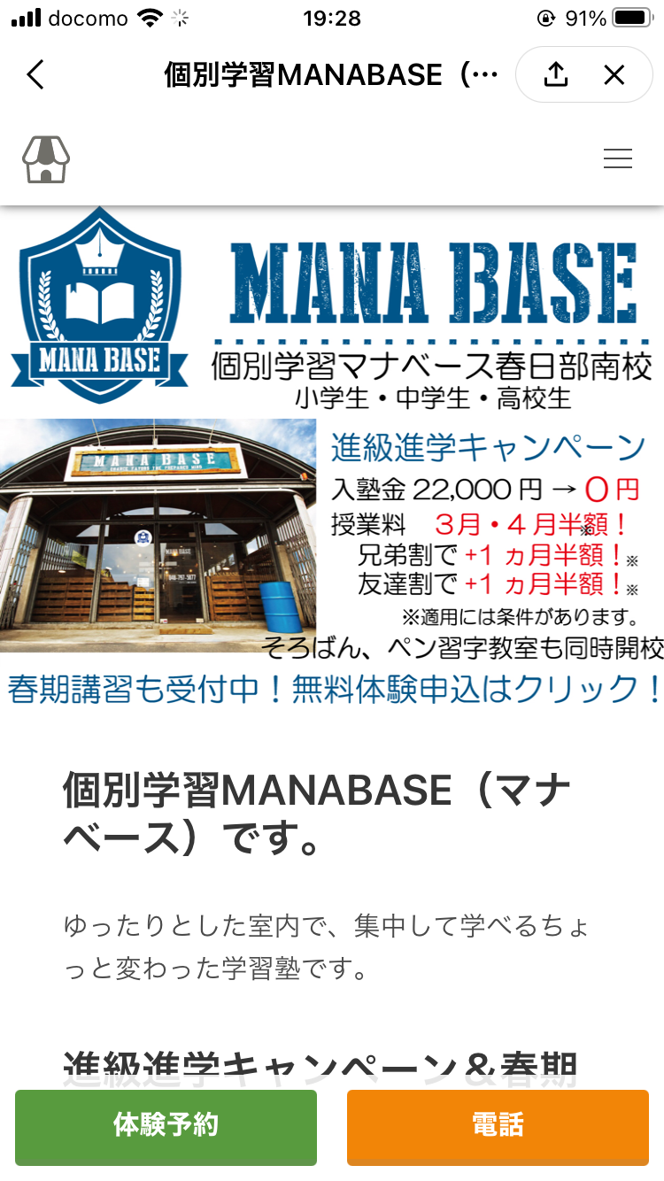 「個別学習MANABASE」のミニアプリは、基本的には初回の体験予約の機能しかありません。