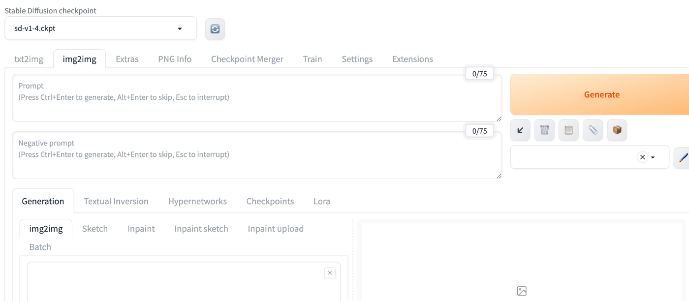 試しに、 stable-diffusion-webui/models/Stable-diffusion 配下に Stable DIffusion 1.4 を持ってくる