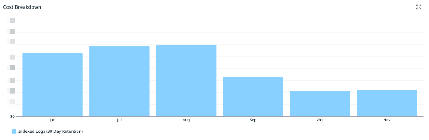 具体的なコストは表示できませんが、2025/08からIndexed Logsのコストが50%削減していることがわかります。