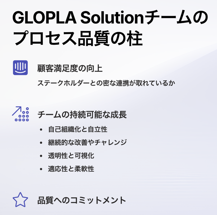 - プロセス品質: 目的達成のために適切な活動が行われ、改善されているか