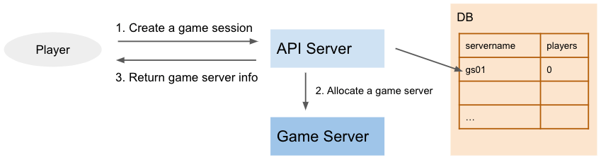 プレイヤーは大抵はじめにAPI Serverを通してログイン処理などを行ってからゲームに参加します。となると、Game Serverの割り当てはAPI Serverを通して行うことになります。