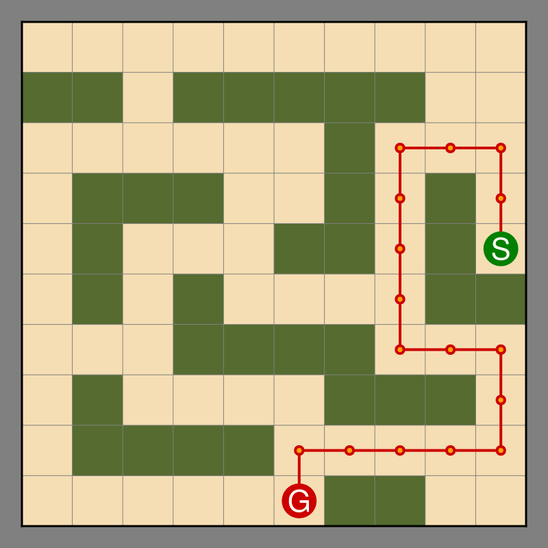 path = search_path(Q, actions, maze, s.start, goal) # 経路検索