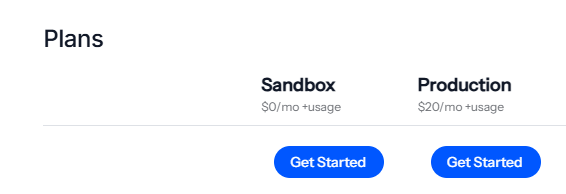 | Sandbox | $0 +使用量 | 無制限 | 無制限 | 無制限 | ✅ | ✅ | ✅ | ✅ | ✅ | ✅ | ❌ | ❌ | ❌ | ❌ | 1日 / 50MB | Flex |