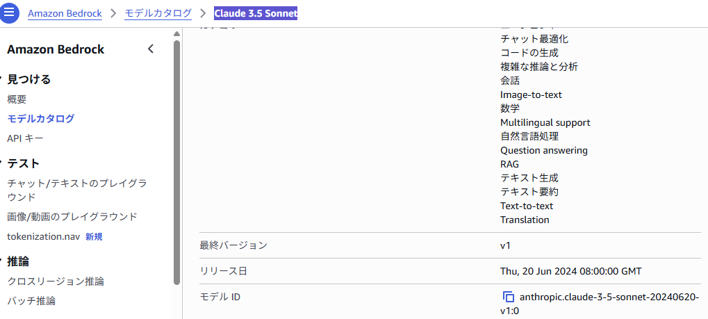 - Sonnet 3.5以上は推論プロファイルを経由したコールが必須
