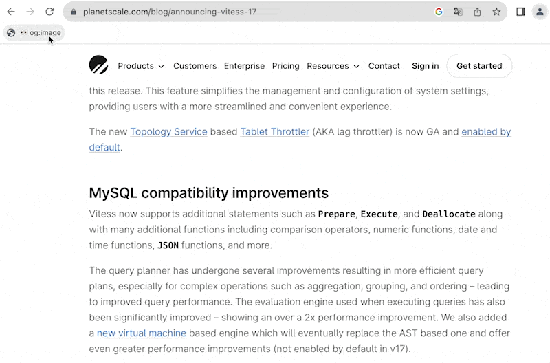 これをconsoleに貼れば、Webページで指定されているOG画像のURLに遷移する。OG画像の指定が見つからなければ何も起きない。