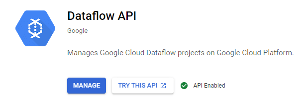 まずは「あれ、API 有効化してなかったけなー?」なんて思いながら「1. Dataflow API is enabled for your project.」を確認してみるわけですね。
