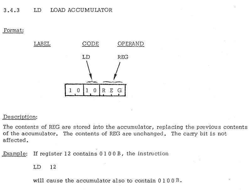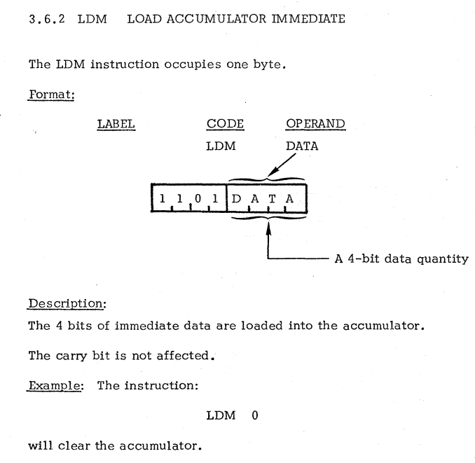 | 21 | IMMEDIATE INSTRUCTIONS | LDM | Load accumulator immediate / アキュムレータを即時にロード |