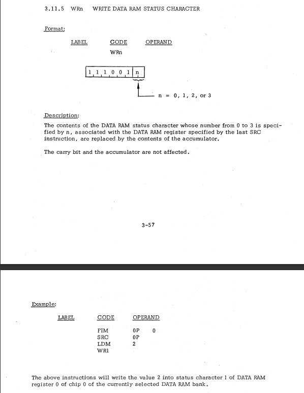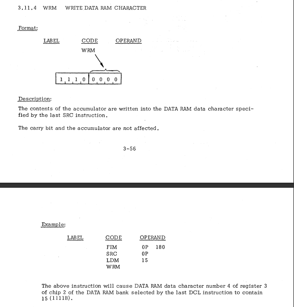 | 31 | I/O AND RAM INSTRUCTIONS | WRM | Write data RAM character / データRAM文字を書き込む |