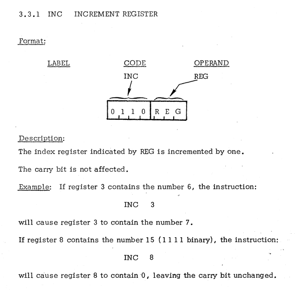 | 1 | INDEX REGISTER INSTRUCTIONS | INC | Increment index register / インデックスレジスタをインクリメント |