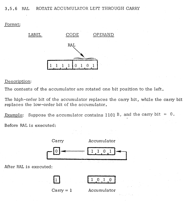 | 12 | ACCUMULATOR INSTRUCTIONS | RAL | Rotate accumulator left / アキュムレータを左にローテート |