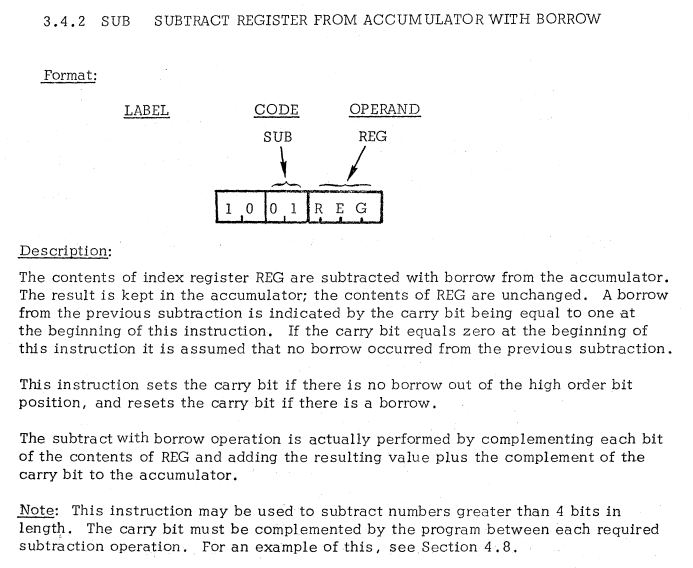 | 4 | INDEX REGISTER TO ACCUMULATOR INSTRUCTIONS | SUB | Subtract index register from accumulator / アキュムレータからインデックスレジスタを減算 |