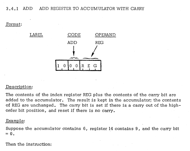 | 3 | INDEX REGISTER TO ACCUMULATOR INSTRUCTIONS | ADD | Add index register to accumulator / インデックスレジスタをアキュムレータに加算 |