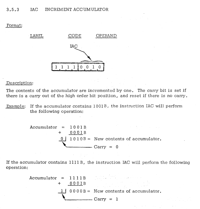 | 9 | ACCUMULATOR INSTRUCTIONS | IAC | Increment accumulator / アキュムレータをインクリメント |