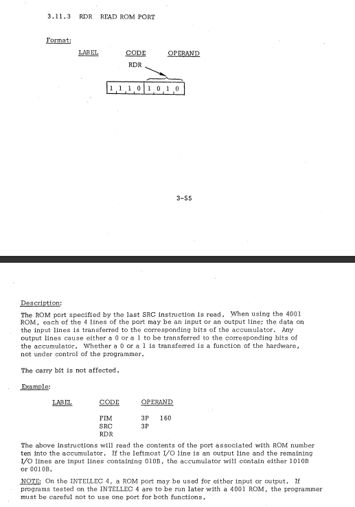 | 40 | I/O AND RAM INSTRUCTIONS | RDR | Read ROM port / ROMポートを読み込む |