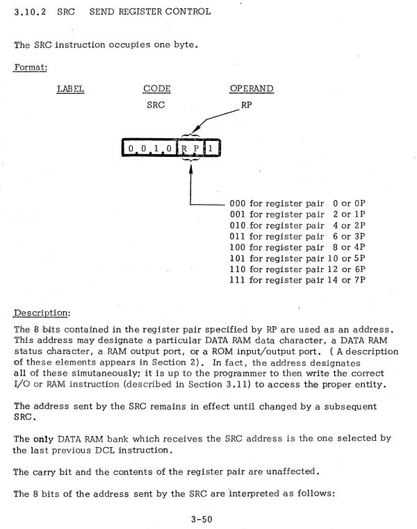 | 30 | MEMORY SELECTION INSTRUCTIONS | SRC | Send register control / レジスタコントロールを送信 |