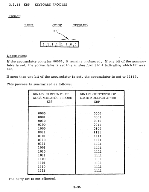 | 19 | ACCUMULATOR INSTRUCTIONS | KBP | Keyboard process / キーボードプロセス |