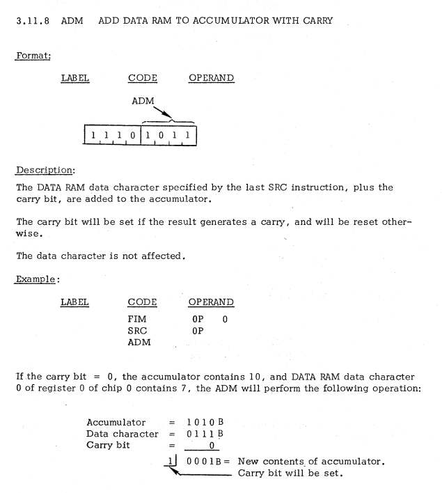 ADM(ADD DATA RAM TO ACCUMULATOR WITH CARRY)