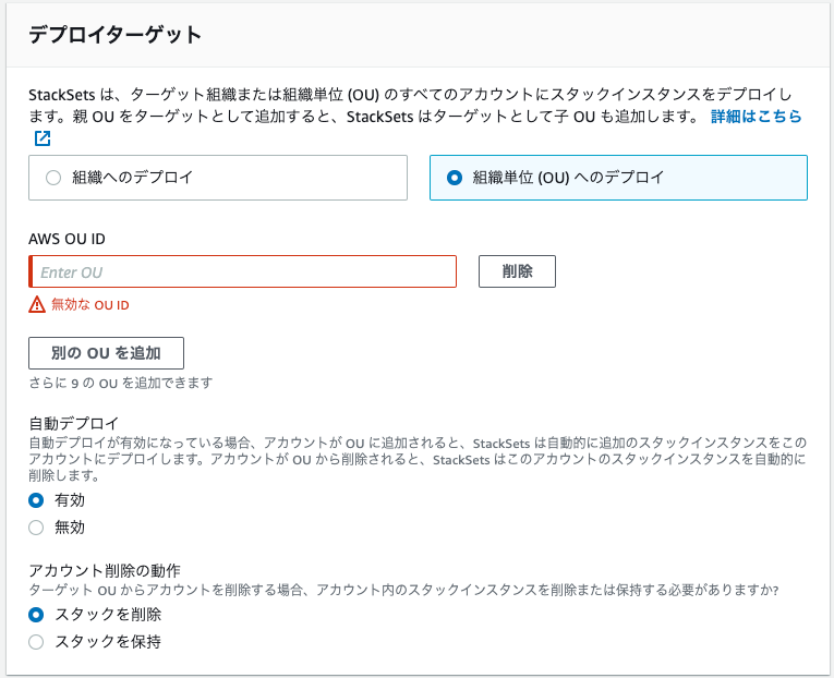 一度作成したStackSetを編集すると、組織へのデプロイ