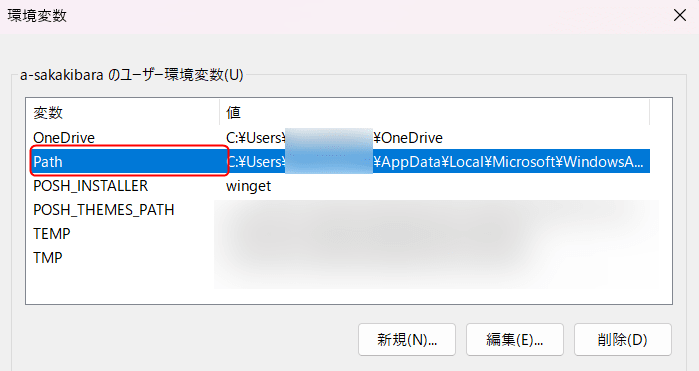 - 「Path」をダブルクリックし編集する。