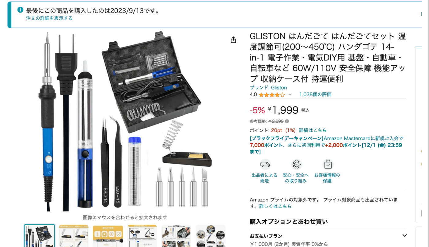 Amazonで安いはんだごてセットを購入しました。