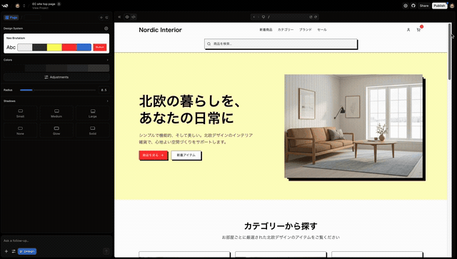 せっかくなので、サンプルのデザインシステムを利用して EC サイトを生成してみました。