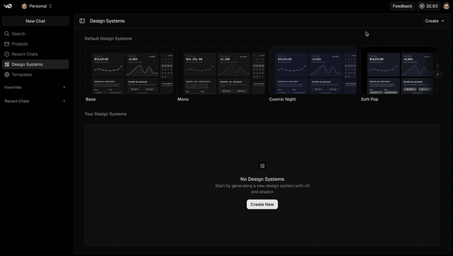 また、v0 にはサンプルのデザインシステムも用意されており、すぐに試すことができます 🎉