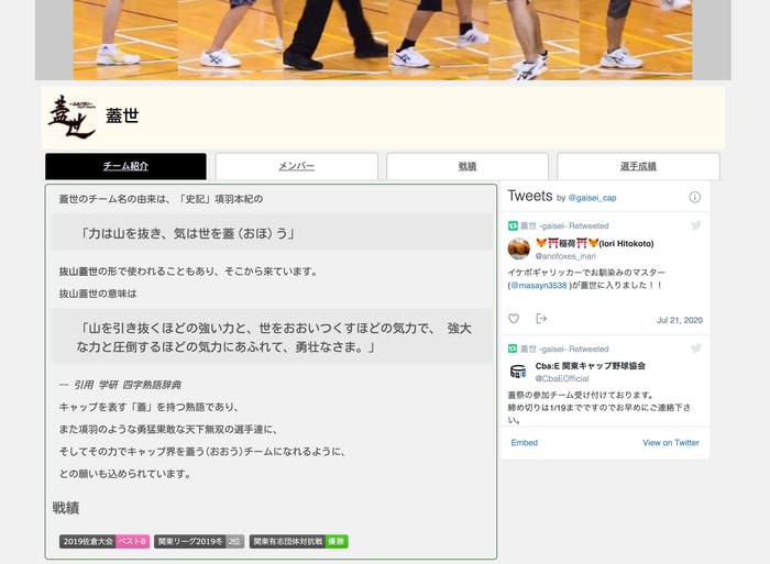 キャップ野球情報局のチームページレイアウトのリニューアル