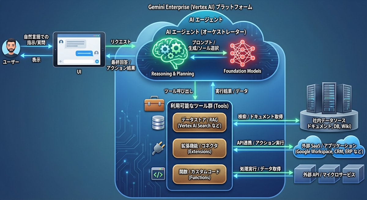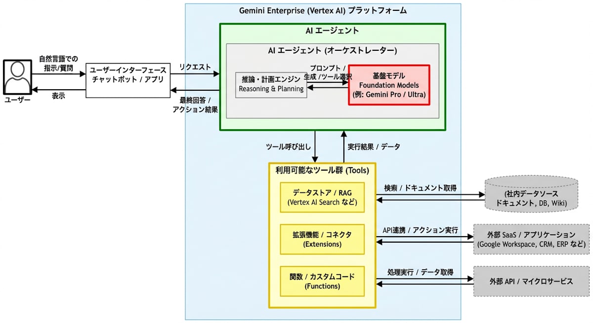 subgraph "Gemini Enterprise (Vertex AI) プラットフォーム":::platform