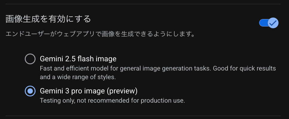 「Gemini 3 pro image」での画像生成を(有効にする)