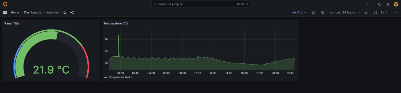 InfluxDBとの連携が完了したらあとは適当にダッシュボードをいじることで無事このような水温の可視化が可能となりました。