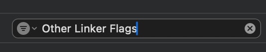 Build Settingsタブを開いたら、検索バーで「Other Linker Flags」と検索しましょう。