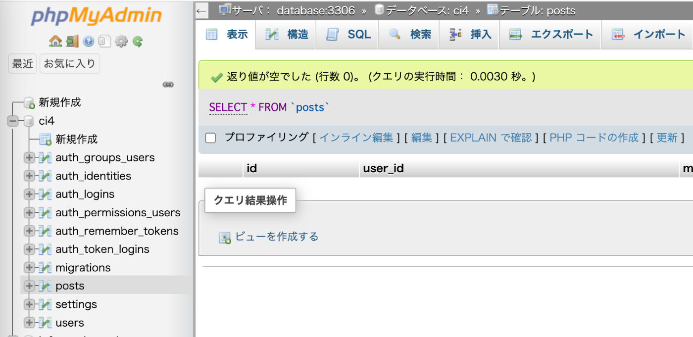 protected $namespace = ['App', 'CodeIgniter\Shield', 'CodeIgniter\Settings']; // マイグレーションファイルの名前空間 CodeIgniter Shieldを動かすためにいくつか追加