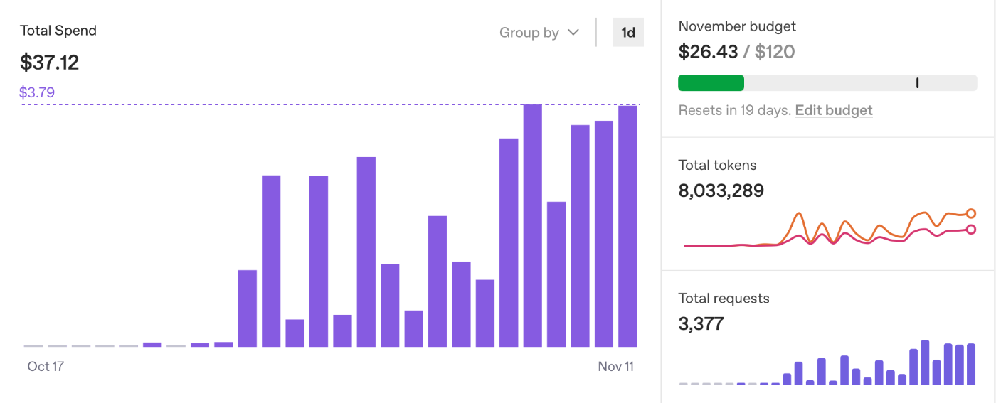 3.79ドル使った日は10時間以上読解していて、合計37.12ドル使ったので、大体100時間は読解していたのかなという計算です。