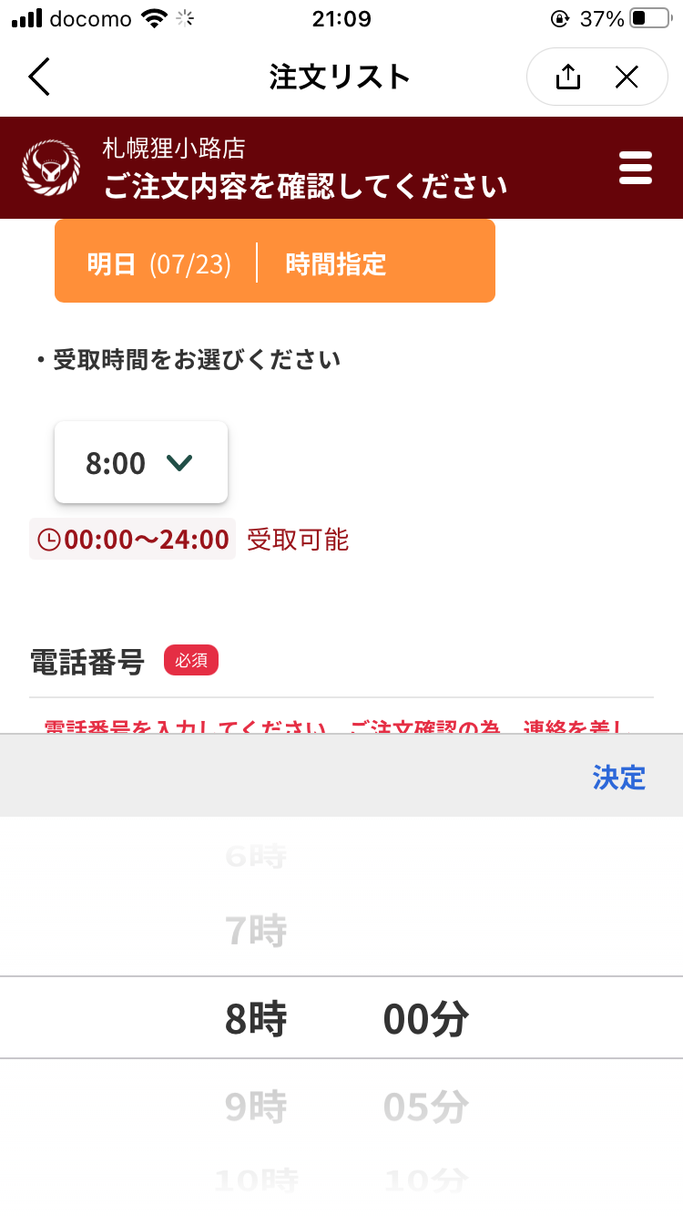 受け取り時間を指定してお会計